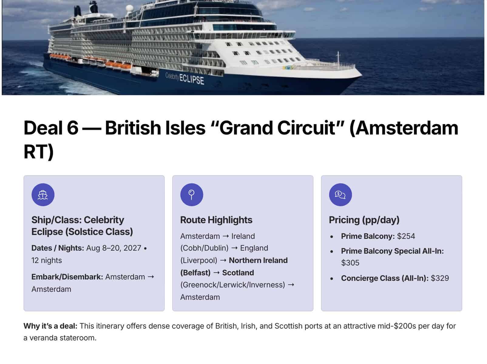 6. Celebrity Eclipse — British Isles Circuit from Amsterdam (12 days, 2027)