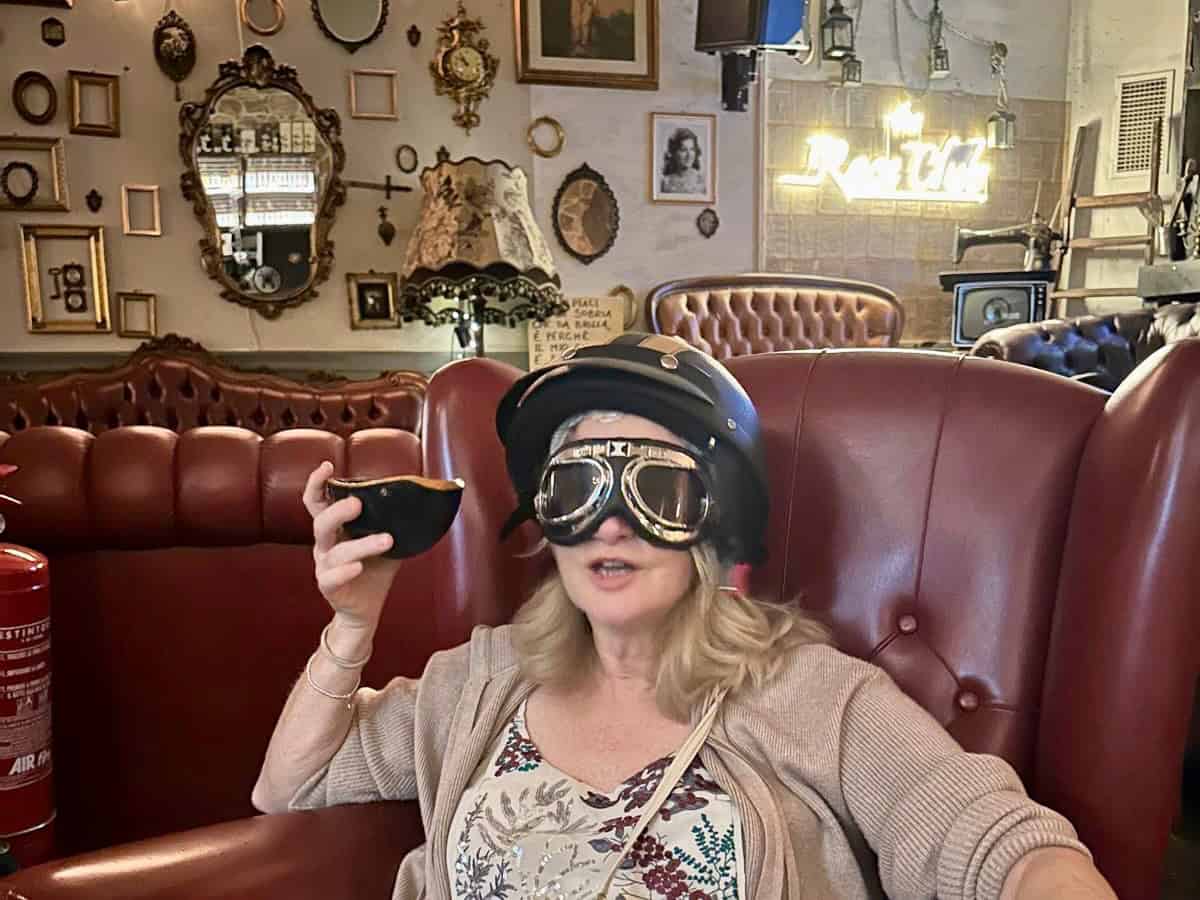 - The Race Club Speakeasy – Located near the Colosseum, this late-night hidden cocktail bar is serious about their libations. Five euros gets you a one-year membership to this club. The dark, intimate space filled with plush sofas and leather armchairs sets the vibe. The bar offers elevated, experimental cocktails delivered with visually stunning and surprising presentations – think light, smoke, and creative glasses. One cocktail we ordered arrived in a small sidecar with a helmet and a pair of goggles. Our group of four had a really fun time here.
