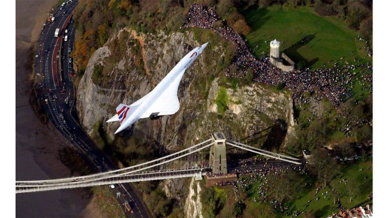 last-ever flight over the Clifton Suspension Bridge in Bristol. SWNS.