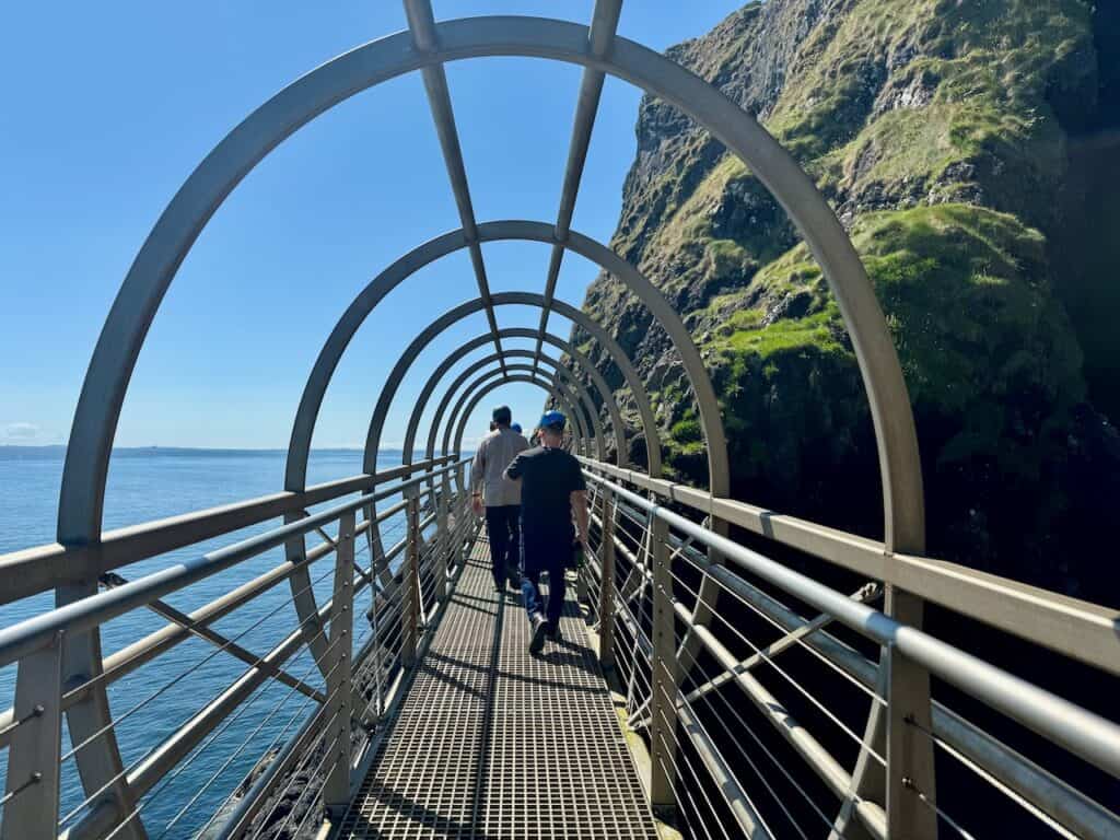 The Gobbins Cliff Path is a strenuous walk on narrow, uneven paths, over 50 rock and metal steps, up and down steep inclines, through a cave and over bridges (one of which is suspended). There are railings along the entire path that can be used for stability, but they caution against people with mobility issues.