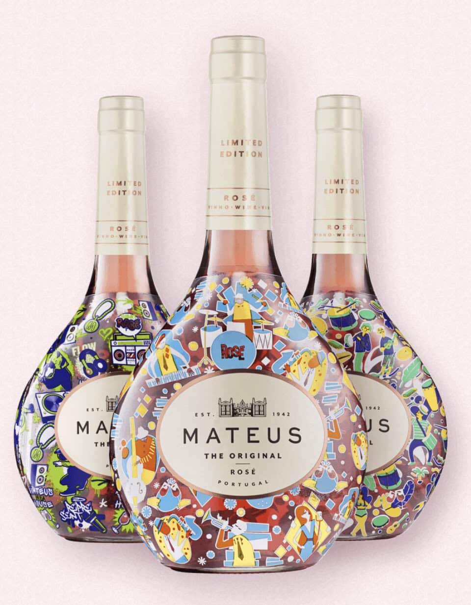 The brand celebrated its 80th anniversary in 2022, commemorated with a trio of limited edition bottles, each one dedicated to a genre of music that has traditionally been enjoyed with Mateus – samba, hip hop and jazz.