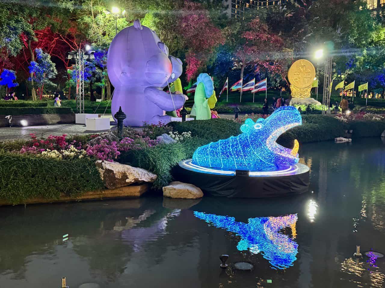 - Benchasiri Park: Moo Deng takes over the park with lights and colors displays.