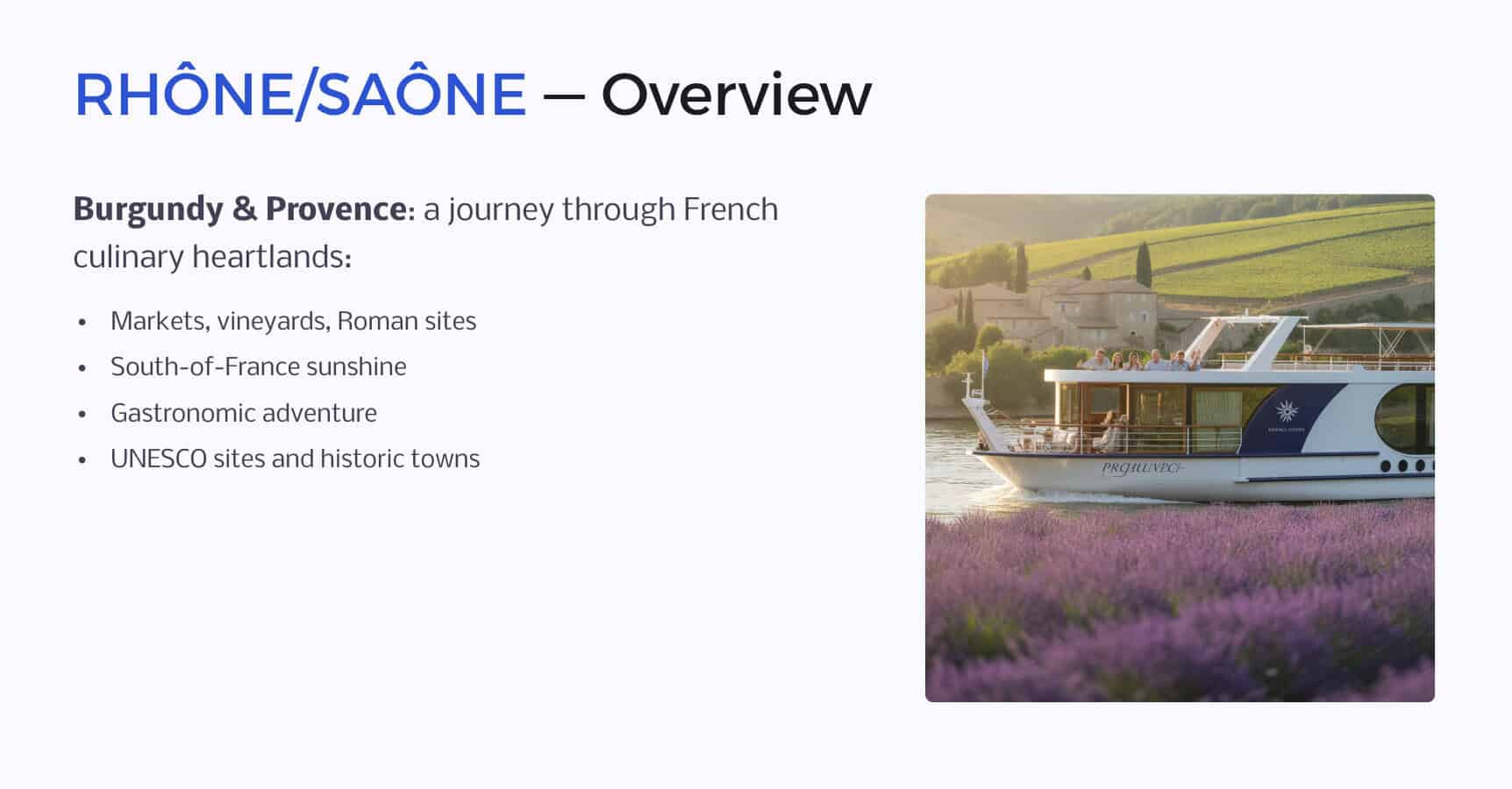 - Food & Provence: Rhône & Saône (Lyon to Avignon)