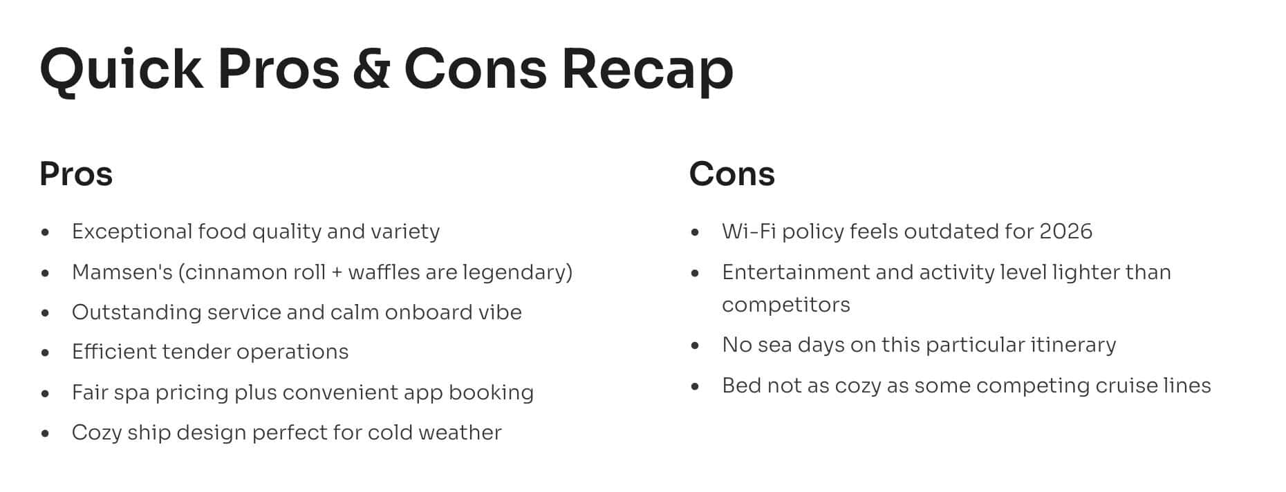 Overall, this sailing felt like a home run. We found very few things to criticize and many reasons to recommend Viking for travelers who want a calm, curated, mostly inclusive ocean cruise.